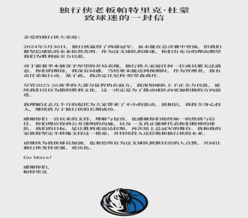 小牛这边,杜蒙特给球迷写了一封信,表达歉意,但其实没什么作用。