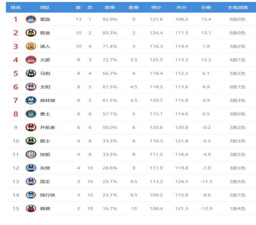 今日比赛后马刺、太阳、森林狼排名互换,其他西部球队排名不变。