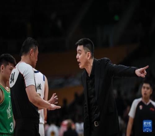 12月15日,辽宁本钢队主教练杨鸣在比赛中庆祝。新华社记者 潘昱龙 摄